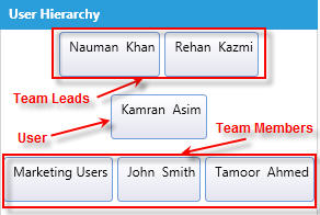 A user has two Teamleads, and two team members. In first row there should be teamleads, 2nd row logined user and 3rd row contains team member of logined user.