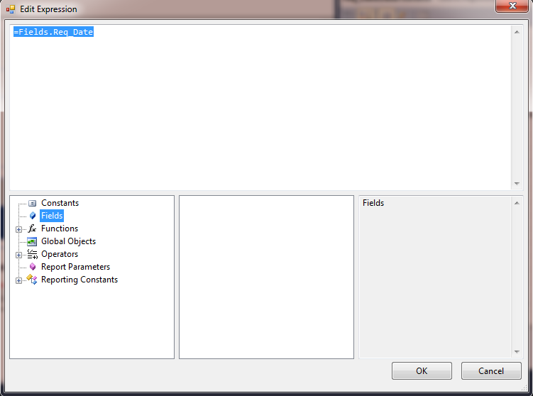 1) In Designer, In Edit Expression Dialogue, After Clicking on Fields options, db fields are not showing up. (see attach image1.png)