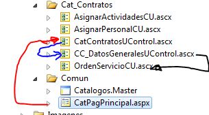 The aspx page contains a call to " UserControlCatalogo " contains a RadGrid with this data, choose "edit " or "new " in this open RadGrid PopUp containing at UserControlDetalle .