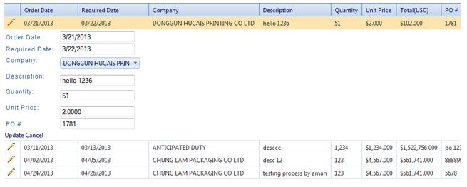 <%@ Control Language="C#" AutoEventWireup="true" CodeBehind="OrdenServicioCU.ascx.cs" Inherits="Presentation.Web.Catalogos.Cat_Contratos.OrdenServicioCU" %><telerik:RadGrid ID="rgOrdenServicio" runat="server" AllowMultiRowEdit="true" Visible="true" AllowPaging="True" GridLines="None" AllowAutomaticUpdates="true" AutoGenerateColumns="false" AllowAutomaticInserts="true" AllowAutomaticDeletes="true" AllowSorting="true"> <MasterTableView CommandItemDisplay="Top" DataKeyNames="ID" NoMasterRecordsText="No hay datos a mostrar."> <PagerStyle Mode="NumericPages"></PagerStyle> <Columns> <telerik:GridEditCommandColumn ButtonType="ImageButton"> </telerik:GridEditCommandColumn> <telerik:GridBoundColumn DataField="ID" HeaderText="ID" Visible="false"> <HeaderStyle Width="1px" /> </telerik:GridBoundColumn> <telerik:GridBoundColumn DataField="OrdenServicio" HeaderText="Orden de Servicio" ReadOnly="True"> </telerik:GridBoundColumn> <telerik:GridBoundColumn DataField="FechaInicio" DataType="System.DateTime" HeaderText="Fecha de Inicio" SortExpression="FechaInicio" UniqueName="FechaInicio" DataFormatString="{0:D}"> </telerik:GridBoundColumn> <telerik:GridBoundColumn DataField="FechaTermino" DataType="System.DateTime" HeaderText="Fecha de Termino" SortExpression="FechaTermino" UniqueName="FechaTermino" DataFormatString="{0:D}"> </telerik:GridBoundColumn> <telerik:GridBoundColumn DataField="MontoAsignado" DataType="System.Decimal" HeaderText="Monto Asignado" SortExpression="MontoAsignado" UniqueName="MONTO_ASIGNADO"> </telerik:GridBoundColumn> <telerik:GridButtonColumn CommandName="Delete" ButtonType="ImageButton"> </telerik:GridButtonColumn> </Columns> <EditFormSettings EditFormType="Template"> <EditColumn UniqueName="EditCommandColumn1"> </EditColumn> <FormTemplate> <table cellspacing="2" cellpadding="1" width="100%" border="0"> <tr style="visibility: hidden"> <td colspan="2"> <b>ID: <%# Eval("ID")%> </b> </td> </tr> <tr> <td> Orden de Servicio: </td> <td> <asp:TextBox Width="200px" ID="TextBox1" runat="server" Text='<%# Bind("OrdenServicio") %>'></asp:TextBox> </td> </tr> <tr> <td> Fecha de Inicio: </td> <td> <asp:TextBox Width="200px" ID="TextBox2" runat="server" Text='<%# DataBinder.Eval( Container, "DataItem.FechaInicio" )%>'></asp:TextBox> </td> </tr> <tr> <td> Fecha de Termino: </td> <td> <asp:TextBox Width="200px" ID="TextBox3" runat="server" Text='<%# DataBinder.Eval( Container, "DataItem.FechaTermino" )%>'></asp:TextBox> </td> </tr> <tr> <td> Monto Asignado: </td> <td> <asp:TextBox Width="200px" ID="TextBox4" runat="server" Text='<%# DataBinder.Eval( Container, "DataItem.MontoAsignado" )%>'></asp:TextBox> </td> </tr> <tr> <td colspan="2"> <asp:Button ID="Button1" runat="server" Text='<%# (Container is GridEditFormInsertItem) ? "Insert" : "Update" %>' CommandName='<%# (Container is GridEditFormInsertItem) ? "PerformInsert" : "Update" %>' OnClick="btnInsertOrden_clic"></asp:Button> <asp:Button ID="Button2" runat="server" Text="Cancel" CausesValidation="false" CommandName="Cancel"> </asp:Button> </td> </tr> </table> </FormTemplate> </EditFormSettings> </MasterTableView></telerik:RadGrid>UserControlDetalleInterno1.cs CodeBehind (yes, other name)