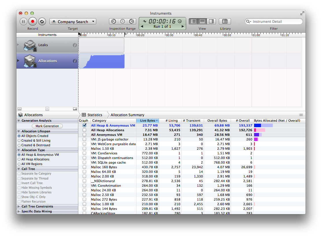 I have attached the Instrument showing the moment "Terminated due to Memory Pressure" appear when debugging on my iPad Air. Thanks!