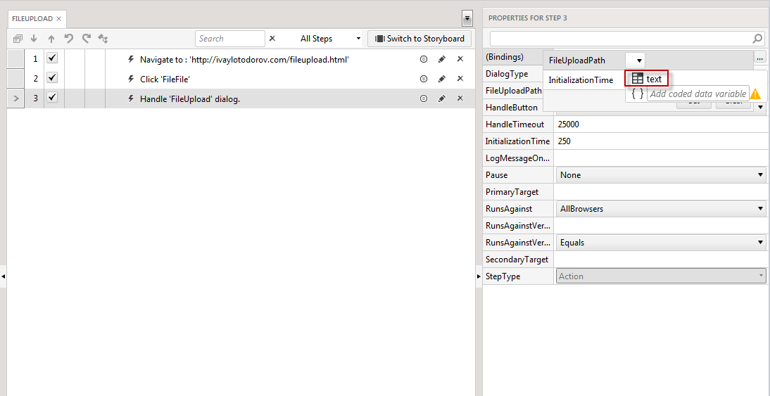 I have a test (called Refresh_Wrapper) that has a data binding to a .csv file with three rows. The test correctly runs three times... once for each row in the .csv.