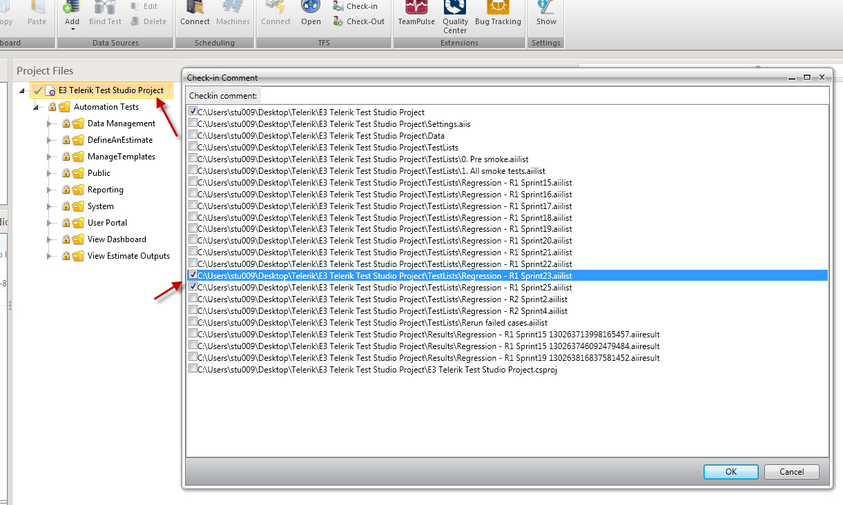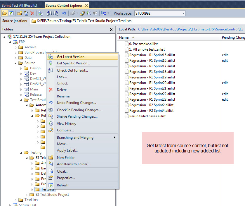 When I try to get latest test lists in another PC, the test lists was not updated. It seems confict issues of project files during checkin, correct? And I cant check in only lists files.