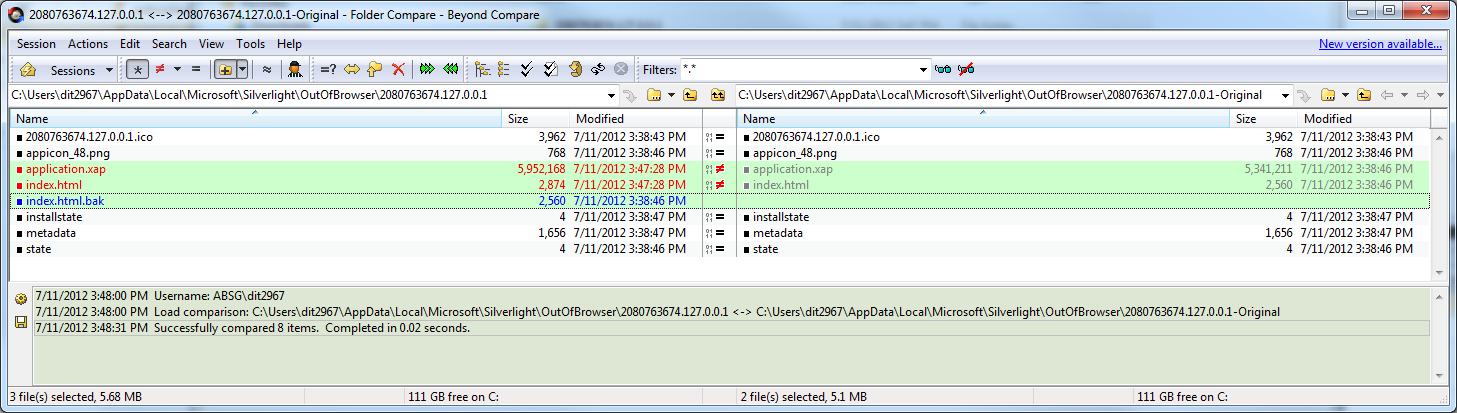Also, Test Studio changes certain files in the Silverlight application (See Attached). When these files change the application continues to run with elevated trust ignored. Attached you will see the files that have changed after Test Studio opened my application. I suspect these file changes may be causing the application to ignore elevated trust. Please let me know.
