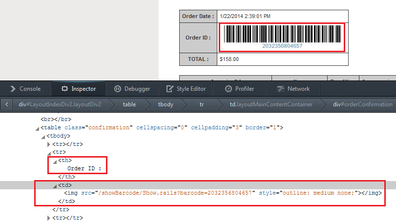 - There is no Attribute ID, class, or src distinction for this barcode (there are more than 1 bar codes on this website)