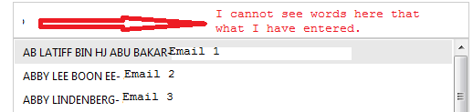 <telerik:RadAutoCompleteBox runat="server" ID="Recipient" Width="500px" DataSourceID="SqlDataSourceEmails" DataTextField="ContactName" DataValueField="Email" Filter="StartsWith" Skin="Metro" DropDownHeight="400px" DropDownWidth="500px"> <DropDownItemTemplate> <table> <tr> <td> <%# DataBinder.Eval(Container.DataItem, "ContactName")%>- <%#DataBinder.Eval(Container.DataItem, "Email")%> </td> </tr> </table> </DropDownItemTemplate> </telerik:RadAutoCompleteBox>Please help me on this.. Thanks..
