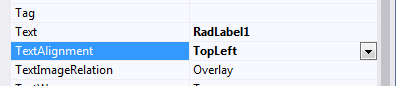 I cannot modify textalignment for a radlabel in designer time. Whichever kind of textalignment I change, it is always fixed in TopLeft. And I cannot change it back any more.