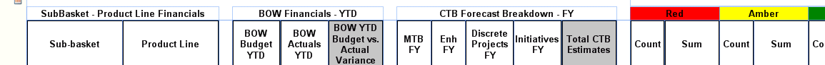 Since I was not able to find a way top merge cells in order to put together the correct columns titles that span across multiple cells I've placed text boxes above the table and aligned the boxes to the exact lines of the cells.
