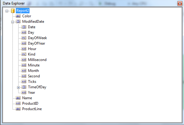 This problem has been fixed in the Q2 2011 SP1 release, namely Fixed: Data Explorer and Expression Editor display incorrectly the properties of nullable fields.
