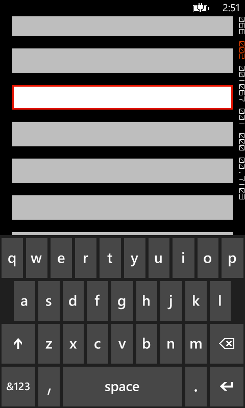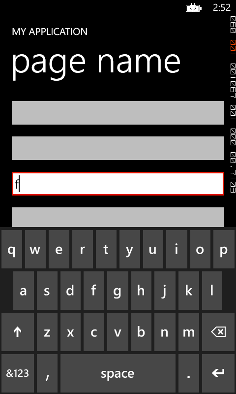 Loaded += (s1, e1) =>{ NameText.Focus();};I'm also using RadContinuumAndSlideTransition animations for page changes. These two things seem to conflict because what ends up happening, is that the keyboard slides in as the whole page is sliding in, and the page ends up sliding up too far so the top of the page is chopped off. This seems to be a timing thing and happens randomly, but the result is a broken looking page. Closing the keyboard fixes the page back to normal.