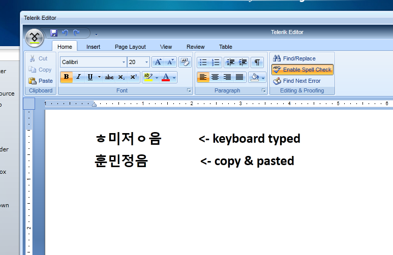 On the other hand, when I copy letters from other program such as MS-Word into RadRichTextbox, it shows no problem