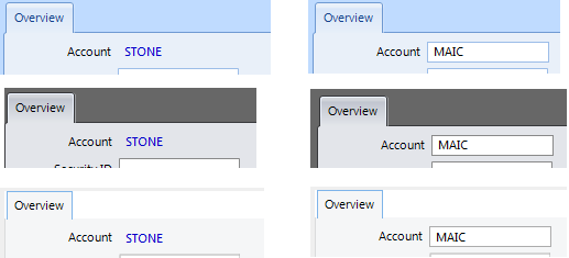 In addition the different themes are using different setting for colors and borders. For this case the easier approach will be to set the required properties explicitly in code: