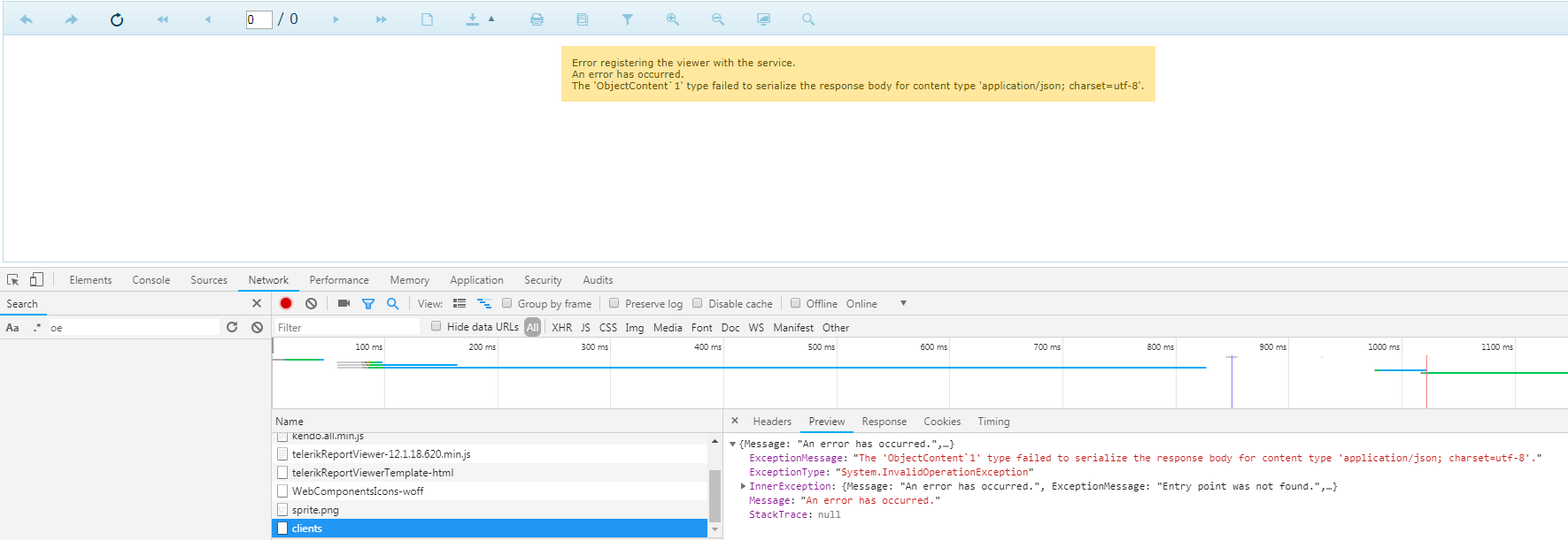 "The 'ObjectContent`1' type failed to serialize the response body for content type 'application/json; charset=utf-8'."