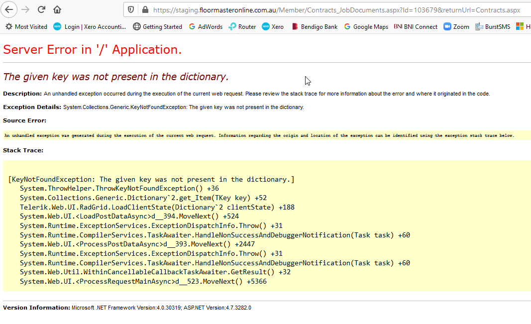 Eine Ausnahme vom Typ "System.Web.HttpUnhandledException" wurde ausgelöst.System.Web.HttpUnhandledException (0x80004005): Eine Ausnahme vom Typ "System.Web.HttpUnhandledException" wurde ausgelöst. ---> System.Collections.Generic.KeyNotFoundException: Der angegebene Schlüssel war nicht im Wörterbuch angegeben.