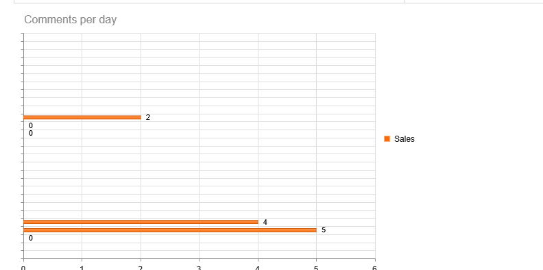 <div kendo-chart='chart1' k-data-source="WidgetDatasource3" k-title="{ text: 'Comments per day', visible: true, align:'left' }" k-legend="{visible:true}" k-series-defaults="{type: 'bar', labels: {visible: true, background: 'transparent'}}" k-category-axis="{ field: 'sales', name: 'Sales', type: 'number'}" k-series="[{field: 'sales', name: 'Sales', dataType:'number'}]" ></div>