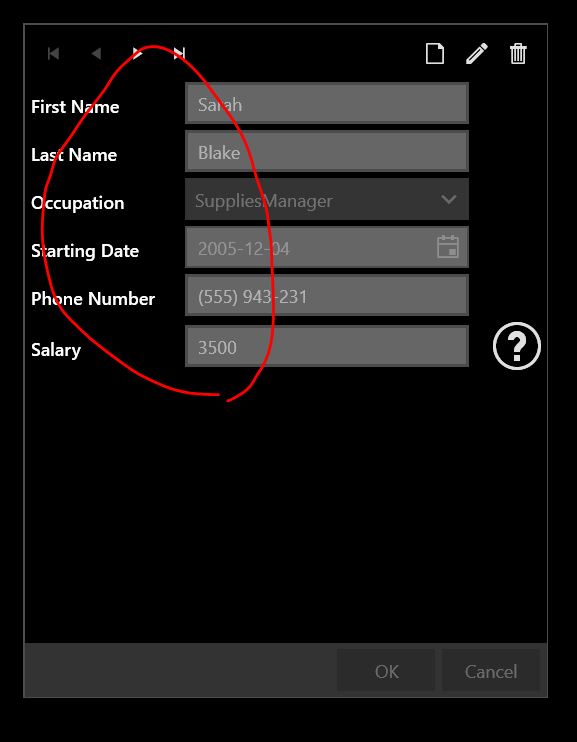 <StackPanel> <telerik:RadGridView x:Name="gvGridView" ItemsSource="{Binding EtcRegistrationViewModel}" CanUserGroupColumns="False" ShowGroupPanel="False" GroupRenderMode="Flat" RowIndicatorVisibility="Collapsed" /> <telerik:RadDataPager Source="{Binding Items, ElementName=gvGridView}" DisplayMode="FirstLastPreviousNextNumeric" PageSize="22"/></StackPanel><Grid Margin="16,0,0,0" Grid.Column="1"> <telerik:RadDataForm x:Name="myRadDataForm" ItemsSource="{Binding EtcRegistrationViewModel}" Width="400"/></Grid>