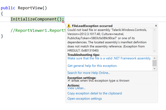I don`t understand what i am doing wrong. I just drag ReportViewer to my window and then it show this error.