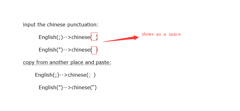 but if I copy the chinese punctuation from other place ,then paste it, it shows the correct punctuation