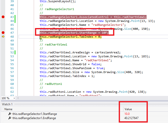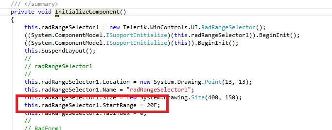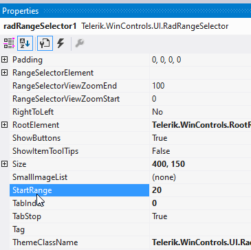 this.radRangeSelector1.StartRange = 10;