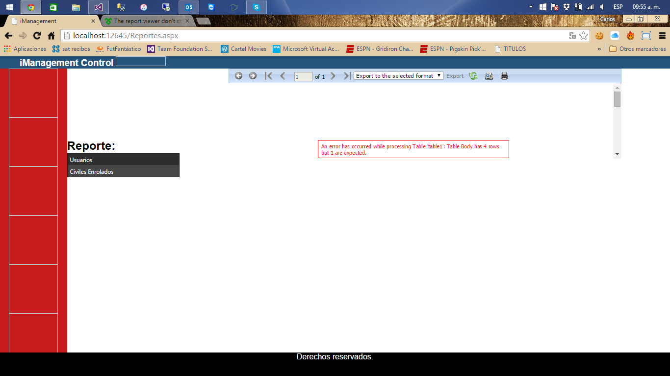 Error de servidor en la aplicación '/'.Referencia a objeto no establecida como instancia de un objeto.Descripción: Excepción no controlada al ejecutar la solicitud Web actual. Revise el seguimiento de la pila para obtener más información acerca del error y dónde se originó en el código. Detalles de la excepción: System.NullReferenceException: Referencia a objeto no establecida como instancia de un objeto.Error de código fuente: Se ha generado una excepción no controlada durante la ejecución de la solicitud Web actual. La información sobre el origen y la ubicación de la excepción pueden identificarse utilizando la excepción del seguimiento de la pila siguiente.Seguimiento de la pila: [NullReferenceException: Referencia a objeto no establecida como instancia de un objeto.] Telerik.Reporting.Processing.Table.ForEachCell(Action`1 action) +161 Telerik.Reporting.Processing.Table.MeasureDataItemContent(IMeasureContext context, SizeRF availableClientSize) +320 Telerik.Reporting.Processing.DataItem.MeasureContent(IMeasureContext context, SizeRF availableClientSize) +149 Telerik.Reporting.Processing.LayoutElement.MeasureCore(IMeasureContext context, SizeRF availableSize) +289 Telerik.Reporting.Processing.VisualElement.MeasureCore(IMeasureContext context, SizeRF availableSize) +141 Telerik.Reporting.Processing.ProcessingElement.MeasureCore(IMeasureContext context, SizeRF availableSize) +135 Telerik.Reporting.Processing.LayoutElement.Measure(IMeasureContext context, SizeRF availableSize) +121 Telerik.Reporting.Processing.AbsolutePositionLayout.MeasureChildItems(IMeasureContext context, SizeRF availableClientSize) +134 Telerik.Reporting.Processing.AbsolutePositionLayout.MeasureContent(IMeasureContext context, SizeRF availableClientSize) +65 Telerik.Reporting.Processing.ReportSectionBase.MeasureContent(IMeasureContext context, SizeRF availableClientSize) +126 Telerik.Reporting.Processing.LayoutElement.MeasureCore(IMeasureContext context, SizeRF availableSize) +289 Telerik.Reporting.Processing.VisualElement.MeasureCore(IMeasureContext context, SizeRF availableSize) +141 Telerik.Reporting.Processing.ProcessingElement.MeasureCore(IMeasureContext context, SizeRF availableSize) +135 Telerik.Reporting.Processing.LayoutElement.Measure(IMeasureContext context, SizeRF availableSize) +121 Telerik.Reporting.Processing.StackLayout.MeasureContent(IMeasureContext context, SizeRF availableClientSize) +261 Telerik.Reporting.Processing.Group.MeasureContent(IMeasureContext context, SizeRF availableClientSize) +123 Telerik.Reporting.Processing.LayoutElement.MeasureCore(IMeasureContext context, SizeRF availableSize) +289 Telerik.Reporting.Processing.VisualElement.MeasureCore(IMeasureContext context, SizeRF availableSize) +141 Telerik.Reporting.Processing.ProcessingElement.MeasureCore(IMeasureContext context, SizeRF availableSize) +135 Telerik.Reporting.Processing.LayoutElement.Measure(IMeasureContext context, SizeRF availableSize) +121 Telerik.Reporting.Processing.StackLayout.MeasureContent(IMeasureContext context, SizeRF availableClientSize) +261 Telerik.Reporting.Processing.Report.MeasureContent(IMeasureContext context, SizeRF availableClientSize) +201 Telerik.Reporting.Processing.LayoutElement.MeasureCore(IMeasureContext context, SizeRF availableSize) +289 Telerik.Reporting.Processing.VisualElement.MeasureCore(IMeasureContext context, SizeRF availableSize) +141 Telerik.Reporting.Processing.ProcessingElement.MeasureCore(IMeasureContext context, SizeRF availableSize) +135 Telerik.Reporting.Processing.LayoutElement.Measure(IMeasureContext context, SizeRF availableSize) +121 Telerik.Reporting.Processing.LayoutElement.MeasureElement(LayoutElement elementToMeasure, IMeasureContext context) +109 Telerik.Reporting.Html5Rendering.Html5ReportInteractive.MeasureReportCore(Report report, IMeasureContext measureContext) +51 Telerik.Reporting.BaseRendering.RenderingExtensionBase.MeasureReport(Report report, Hashtable deviceInfo) +90 Telerik.Reporting.BaseRendering.RenderingExtensionBase.Render(Report report, Hashtable renderingContext, Hashtable deviceInfo, CreateStream createStreamCallback, EvaluateHeaderFooterExpressions evalHeaderFooterCallback) +419 Telerik.Reporting.Processing.ReportProcessor.RenderCore(ExtensionInfo extensionInfo, IList`1 reports, Hashtable deviceInfo, IRenderingContext renderingContext, CreateStream createStreamCallback) +1372 Telerik.Reporting.Processing.ReportProcessor.RenderCore(String format, IList`1 reports, Hashtable deviceInfo, IRenderingContext renderingContext, CreateStream createStreamCallback) +103 Telerik.ReportViewer.WebForms.ReportPageOperation.RenderReport(String format, IList`1 processingReports, Hashtable deviceInfo, IRenderingContext renderingContext) +122 Telerik.ReportViewer.WebForms.ReportRenderOperation.PerformOperationOverride() +340 Telerik.ReportViewer.WebForms.ReportPageOperation.PerformOperationOverride() +173 Telerik.ReportViewer.WebForms.HandlerOperation.PerformOperation(HttpContext context, ICacheManager cacheManager) +74 Telerik.ReportViewer.WebForms.BasicHandler.ProcessRequest(HttpContext context) +276 System.Web.CallHandlerExecutionStep.System.Web.HttpApplication.IExecutionStep.Execute() +341 System.Web.HttpApplication.ExecuteStep(IExecutionStep step, Boolean& completedSynchronously) +69Información de versión: Versión de Microsoft .NET Framework:4.0.30319; Versión ASP.NET:4.0.30319.34248