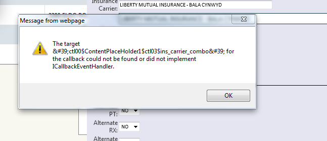 <%@ Control Language="C#" AutoEventWireup="true" CodeFile="mw_ora_prnt_acct_info.ascx.cs" Inherits="Telerik.Web.Examples.ToolTip.ToolTipVersusToolTipManager.InfoCustomers" %><asp:Panel ID="cust_info_pnl" runat="server"> <asp:Table ID="cust_info_tbl" runat="server" Width="500px"> <asp:TableRow> <asp:TableCell ColumnSpan="2" style="font:20px Yanone Kaffeesatz;color:Black;border-bottom:1px solid Black;text-align:left;">Company Information</asp:TableCell> </asp:TableRow> <asp:TableRow> <asp:TableCell Width="150px" Wrap="false" HorizontalAlign="Right">Company Name:</asp:TableCell> <asp:TableCell Wrap="false" HorizontalAlign="Left"><asp:TextBox ID="prnt_acct_name_txt" Width="300px" runat="server" CssClass="txtbox"></asp:TextBox></asp:TableCell> </asp:TableRow> <asp:TableRow> <asp:TableCell Width="150px" Wrap="false" HorizontalAlign="Right">Account Type:</asp:TableCell> <asp:TableCell Wrap="false" HorizontalAlign="Left"><asp:DropDownList ID="acct_type_drp" runat="server" CssClass="txtbox"> <asp:ListItem Value="EMPLOYER">EMPLOYER</asp:ListItem> <asp:ListItem Value="NONE">NONE</asp:ListItem> <asp:ListItem Value="PHYSICIAN NETWORK">PHYSICIAN NETWORK</asp:ListItem> </asp:DropDownList> </asp:TableCell> </asp:TableRow> <asp:TableRow> <asp:TableCell Width="150px" Wrap="false" HorizontalAlign="Right">WW Contract Date:</asp:TableCell> <asp:TableCell Wrap="false" HorizontalAlign="Left"><asp:TextBox ID="acct_cntrct_date_txt" Width="75px" runat="server" ReadOnly="true" BackColor="LightSlateGray" CssClass="txtbox"></asp:TextBox></asp:TableCell> </asp:TableRow> <asp:TableRow> <asp:TableCell Width="150px" Wrap="false" HorizontalAlign="Right">ES Follow-Up Date:</asp:TableCell> <asp:TableCell Wrap="false" HorizontalAlign="Left"><asp:TextBox ID="fu_date_txt" Width="75px" runat="server" CssClass="txtbox"></asp:TextBox></asp:TableCell> </asp:TableRow> <asp:TableRow> <asp:TableCell Width="150px" Wrap="false" HorizontalAlign="Right">ES Priority:</asp:TableCell> <asp:TableCell Wrap="false" HorizontalAlign="Left"><asp:DropDownList ID="es_priority_drp" runat="server" CssClass="txtbox"> <asp:ListItem Value="6TH">6TH</asp:ListItem> <asp:ListItem Value="5TH">5TH</asp:ListItem> <asp:ListItem Value="4TH">4TH</asp:ListItem> <asp:ListItem Value="3RD">3RD</asp:ListItem> <asp:ListItem Value="2ND">2ND</asp:ListItem> <asp:ListItem Value="1ST">1ST</asp:ListItem> </asp:DropDownList></asp:TableCell> </asp:TableRow> <asp:TableRow> <asp:TableCell ColumnSpan="2" style="font:20px Yanone Kaffeesatz;color:Black;border-bottom:1px solid Black;text-align:left;">Carrier Information</asp:TableCell> </asp:TableRow> <asp:TableRow> <asp:TableCell Width="150px" Wrap="false" HorizontalAlign="Right"></asp:TableCell> <asp:TableCell Wrap="false" HorizontalAlign="Left"> </asp:TableCell> </asp:TableRow> <asp:TableRow> <asp:TableCell Width="150px" Wrap="false" HorizontalAlign="Right">Insurance Carrier:</asp:TableCell> <asp:TableCell Wrap="false" HorizontalAlign="Left"><asp:TextBox ID="ins_carrier_txt" Width="300px" runat="server" CssClass="txtbox"></asp:TextBox> </asp:TableCell> </asp:TableRow> <asp:TableRow> <asp:TableCell> </asp:TableCell> <asp:TableCell><telerik:RadComboBox ID="ins_carrier_combo" runat="server" Height="200" Width="640" DropDownWidth="720" EmptyMessage="Choose a Carrier" HighlightTemplatedItems="true" EnableLoadOnDemand="true" Filter="StartsWith" OnItemsRequested="ins_carrier_combo_ItemsRequested" OnAjaxUpdate="OnAjaxUpdate"> <HeaderTemplate> <table style="width: 670px" cellspacing="0" cellpadding="0"> <tr> <td style="width: 550px;"> Carrier Name </td> <td style="width: 120px; text-align: left;"> Account Number </td> </tr> </table> </HeaderTemplate> <ItemTemplate> <table style="width: 670px" cellspacing="0" cellpadding="0"> <tr> <td style="width: 550px;"> <%# DataBinder.Eval(Container, "Attributes['ACCOUNT_NAME']")%> </td> <td style="width: 120px; text-align: left;"> <%# DataBinder.Eval(Container, "Attributes['ACCOUNT_NUMBER']")%> </td> </tr> </table> </ItemTemplate> </telerik:RadComboBox></asp:TableCell> </asp:TableRow> <asp:TableRow> <asp:TableCell Width="150px" Wrap="false" HorizontalAlign="Right">Carrier Renewal Date:</asp:TableCell> <asp:TableCell Wrap="false" HorizontalAlign="Left"><asp:TextBox ID="renewal_date_txt" Width="75px" runat="server" CssClass="txtbox"></asp:TextBox></asp:TableCell> </asp:TableRow> <asp:TableRow> <asp:TableCell Width="150px" Wrap="false" HorizontalAlign="Right">Broker Code:</asp:TableCell> <asp:TableCell Wrap="false" HorizontalAlign="Left"><asp:TextBox ID="broker_code_txt" Width="35px" runat="server" CssClass="txtbox"></asp:TextBox></asp:TableCell> </asp:TableRow> <asp:TableRow> <asp:TableCell Width="150px" Wrap="false" HorizontalAlign="Right"></asp:TableCell> <asp:TableCell Wrap="false" HorizontalAlign="Left"> </asp:TableCell> </asp:TableRow> <asp:TableRow> <asp:TableCell ColumnSpan="2" style="font:20px Yanone Kaffeesatz;color:Black;border-bottom:1px solid Black;text-align:left;">Misc Information</asp:TableCell> </asp:TableRow> <asp:TableRow> <asp:TableCell Width="150px" Wrap="false" HorizontalAlign="Right">Ancillary Services:</asp:TableCell> <asp:TableCell Wrap="false" HorizontalAlign="Left"><asp:DropDownList ID="ancil_svcs_drp" runat="server" CssClass="txtbox"> <asp:ListItem Value="Y">YES</asp:ListItem> <asp:ListItem Value="N">NO</asp:ListItem> </asp:DropDownList></asp:TableCell> </asp:TableRow> <asp:TableRow> <asp:TableCell Width="150px" Wrap="false" HorizontalAlign="Right">Alternate PT:</asp:TableCell> <asp:TableCell Wrap="false" HorizontalAlign="Left"><asp:DropDownList ID="alt_pt_drp" runat="server" CssClass="txtbox"> <asp:ListItem Value="Y">YES</asp:ListItem> <asp:ListItem Value="N">NO</asp:ListItem> </asp:DropDownList></asp:TableCell> </asp:TableRow> <asp:TableRow> <asp:TableCell Width="150px" Wrap="false" HorizontalAlign="Right">Alternate RX:</asp:TableCell> <asp:TableCell Wrap="false" HorizontalAlign="Left"><asp:DropDownList ID="alt_rx_drp" runat="server" CssClass="txtbox"> <asp:ListItem Value=