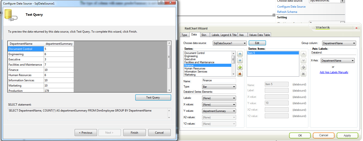 When I try to make a BAR chart , I get an error message The type of column with name ... is not numeric. The data source for the chart is retrieved from SQL 2005 using this query: