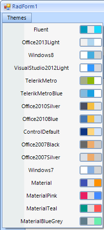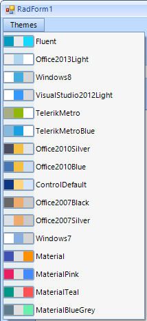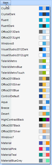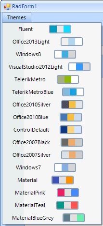 Currently I'm using radMenu for displaying and changing the theme at Run time.