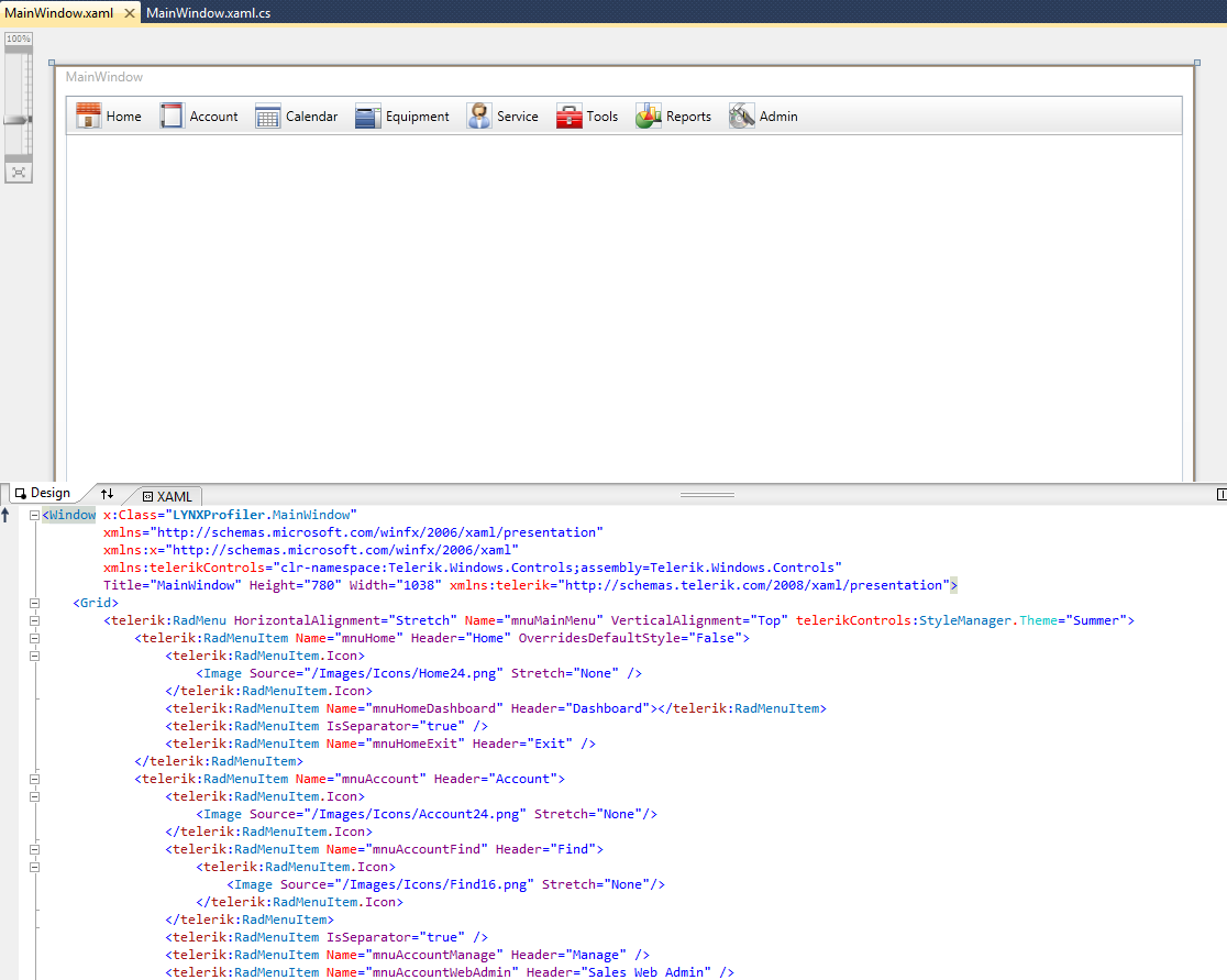 <telerik:RadMenu HorizontalAlignment="Stretch" Name="mnuMainMenu" VerticalAlignment="Top" telerikControls:StyleManager.Theme="Summer">