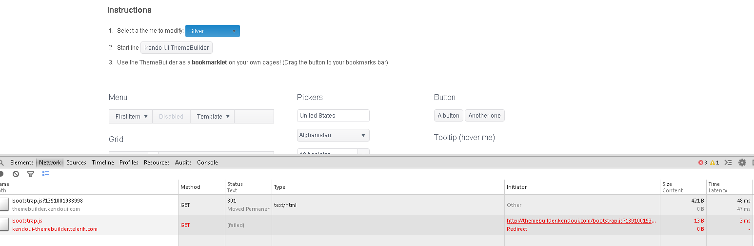 Hi, we are trying to execute the Kendo UI Theme builder on ligne but it doesn't run have you any idea what should we do ? (Find in attachment the error captured in Google chrome)