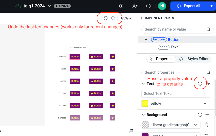 Once a change is made is there anyway to UNDO once you see its effected other controls negatively?