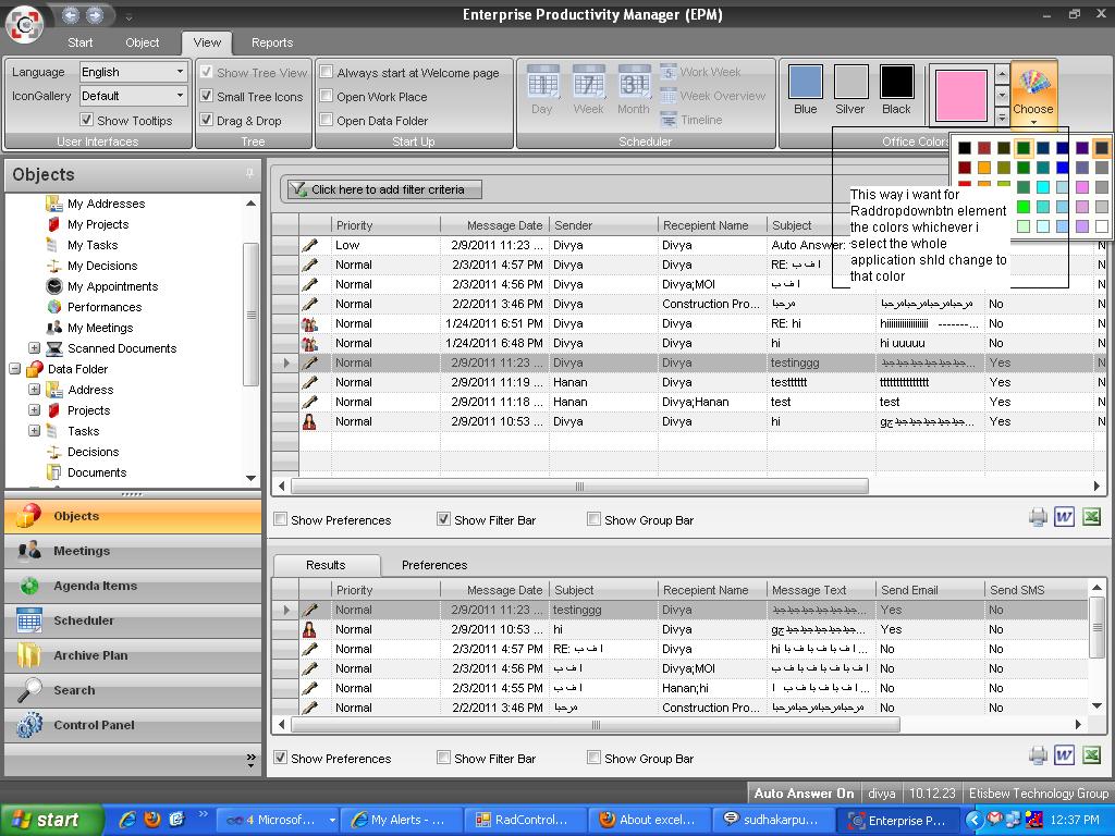 I have a RadDropdownbutton on a Ribbionbar i want on the dropdown some colors and on selecting the particular color my whole application shld change to that color how can i do please explain me.....Refer the screenshot.