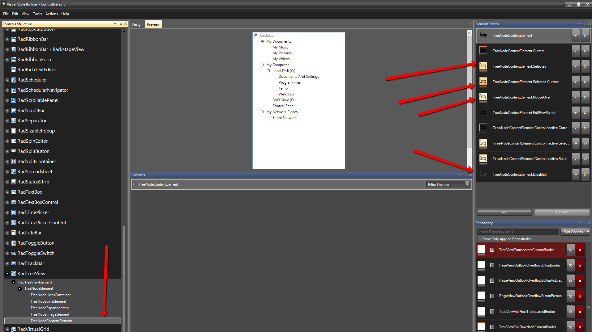 I have skinned my Treeview such that it has flat white icons and white text on a blue background. I'd like them to invert colors for selection (blue on a white background).
