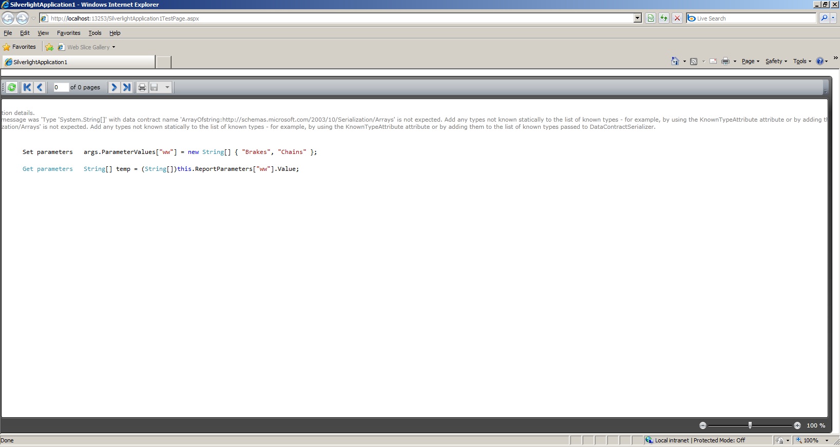 You should cast the parameters' value of type object like in your error2 screenshot. A possible reason for the error might be if your "ww" parameter is not MultiValue parameter - check that and correct it.