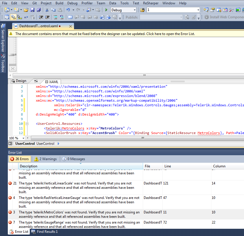 I'm trying to use the sample code that I found at http://demos.telerik.com/silverlight/silverlight3/#Gauge/Gallery/Thermometer, but I am getting a lot of missing style problems.