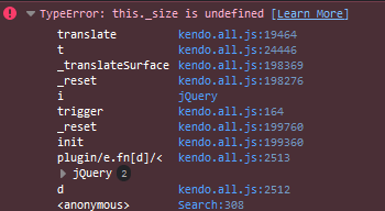 An additional note. The map is inside a kendoWindow which is not visible when the page first loads. Attached is the stack trace for when the page first loads.
