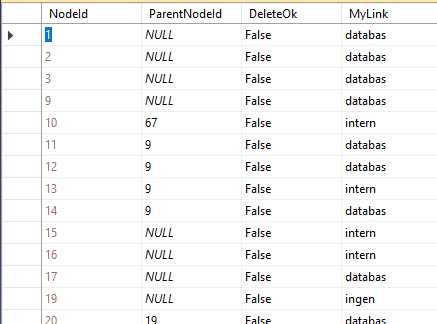The ParentNodeId is NULL for 1-4