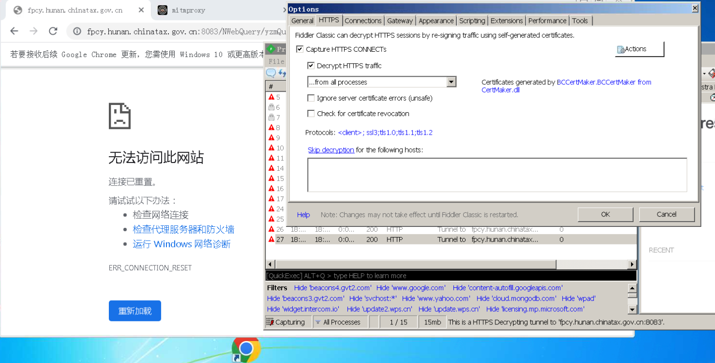 The open-source tool mitmproxy supports decryption under Windows 7.