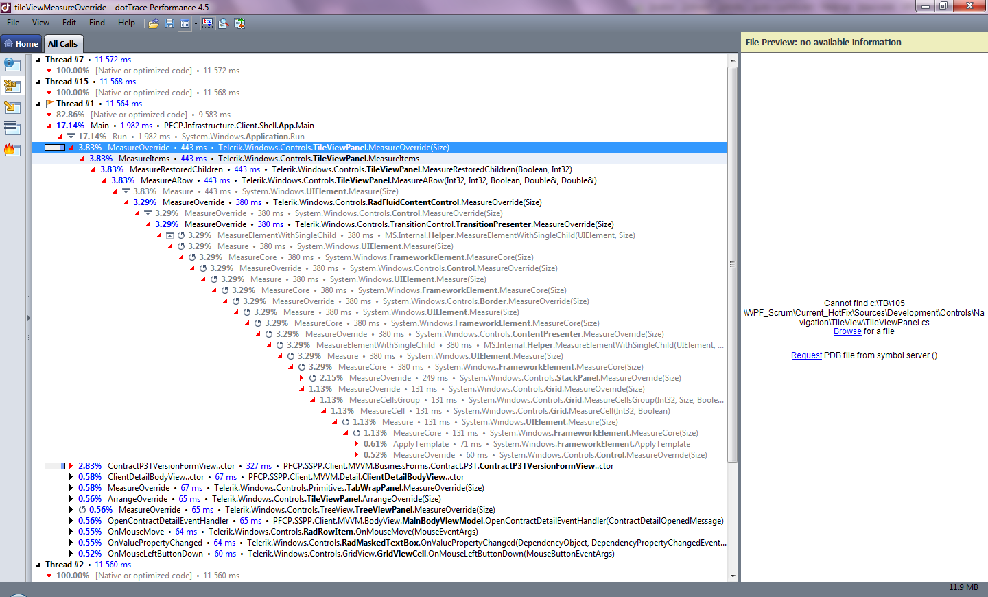 As you can see in attached file, there is a big block with MeasureOverride cals inside Telerik TileView.. Is it possible do any optimalization inside this code?