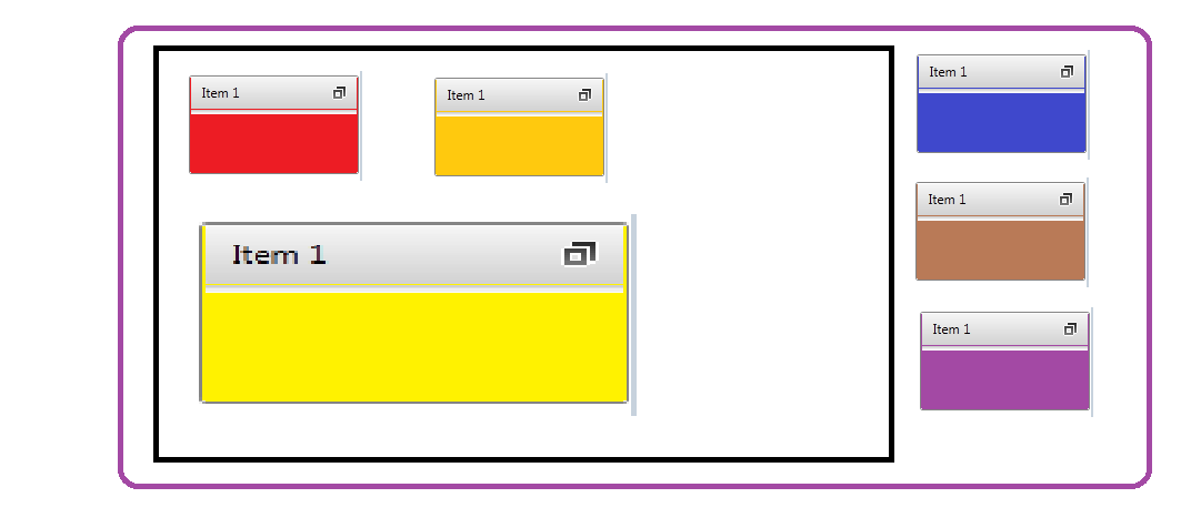 when i maximize the red item it will be in the black border area and the orange and yellow items minimized.