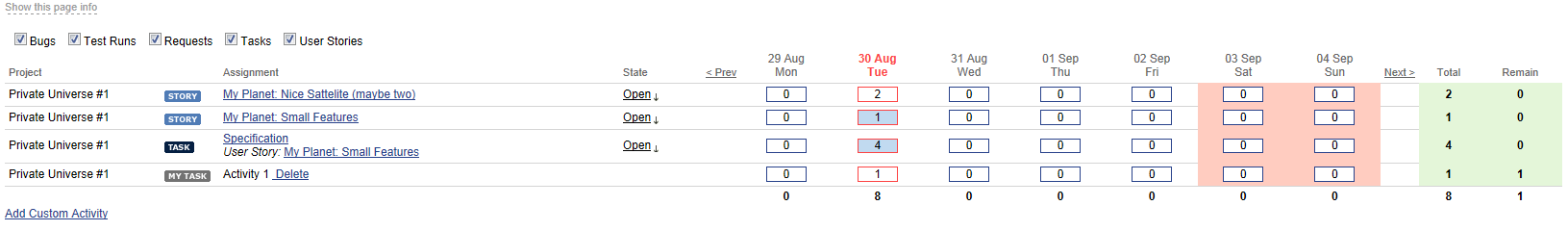 I Need something like TargetProcess that allow developper to enter daily activity.