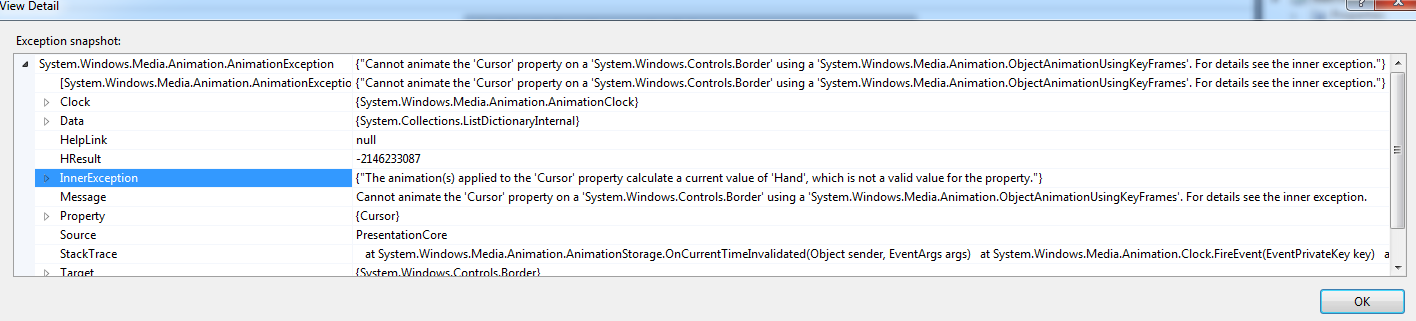 I have the license for version 2011.1.405.40. And in this version, i am getting the Animation exception whenever i move the mouse over the timebar control. Apparently it is trying to access Hand property of Cursor and it is unable to animate it over the Border control. Following is my code: