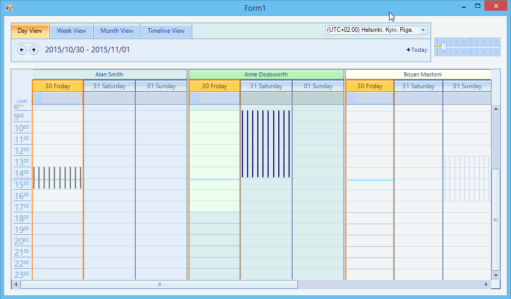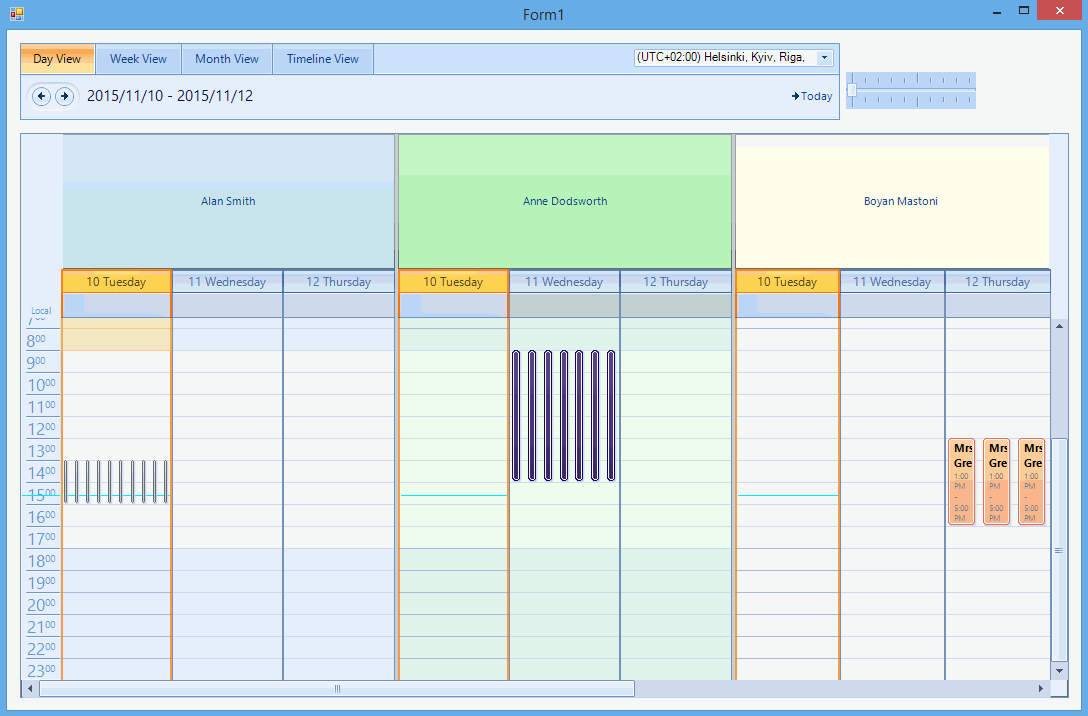 As you can see, in the timeline, the control automatically align overlapped appointments into appointment lines.