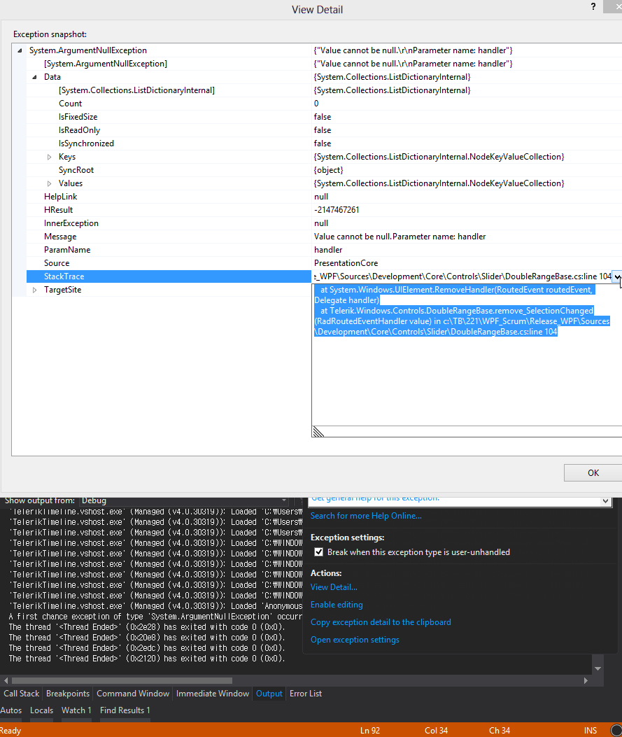 at Telerik.Windows.Controls.DoubleRangeBase.remove_SelectionChanged(RadRoutedEventHandler value) in c:\TB\221\WPF_Scrum\Release_WPF\Sources\Development\Core\Controls\Slider\DoubleRangeBase.cs:line 104