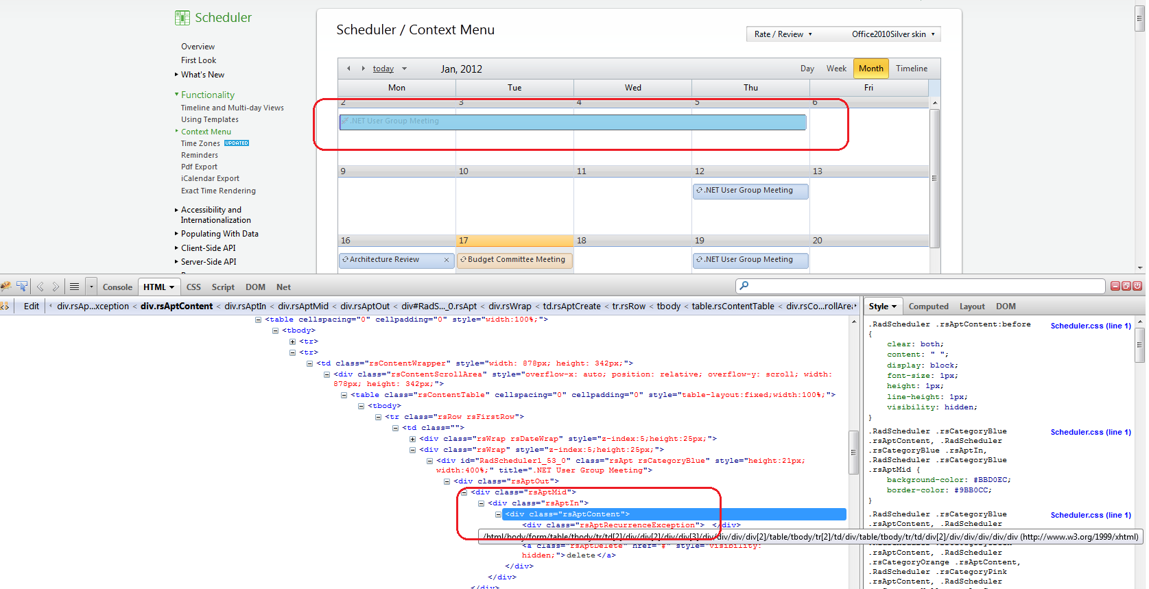 Let's say there's an appointment that last 7 days. I would like, programmatically, to have it coloured blue for the first 4 days and red the remaing 3 days (better, setting css style), is it possible?
