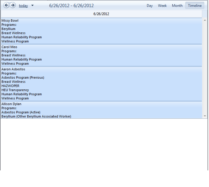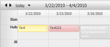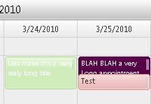 I am using the timeline view to schedule jobs to our users. I need to be able to show the full subject name which can be rather long. I have setup some custom CSS classes that get applied to appointments with long names. (This can be seen in LongApName.png)