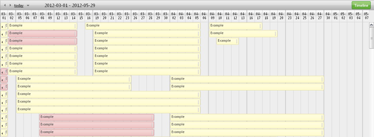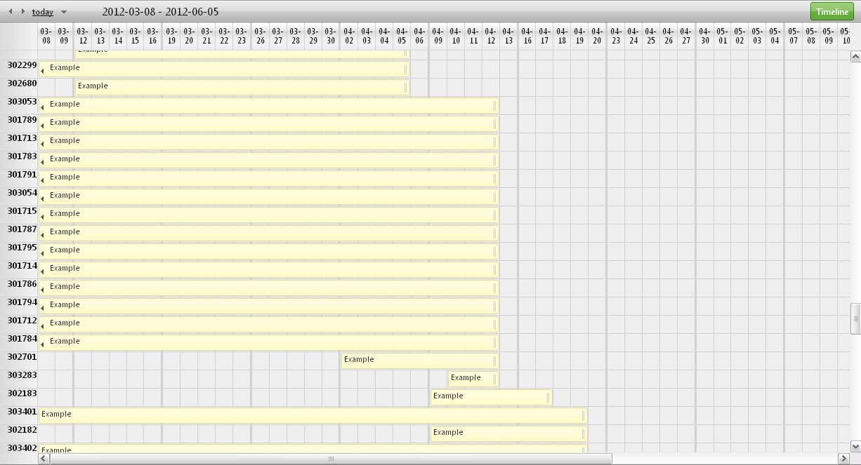 thank you for the response. I am using the Timeline View. My Problem is that I want to have one appointment per row as written above. Right now the control renders the appointments wherever they fit, see attachment TimelineNoGrouping. However I want it to use one row per appointment see Attachment TimelineGrouping. But if I use grouping the performance is not acceptable.
