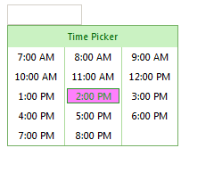 | <TimeView runat="server" StartTime="07:00:00" EndTime="20:00:10" /> |
