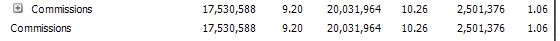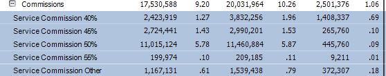 Also, BTW, I hide the rows in detail group if the children name is equal to the parent name. That is why , initially, the "commissions" line only shows on my group header level, which is expected.