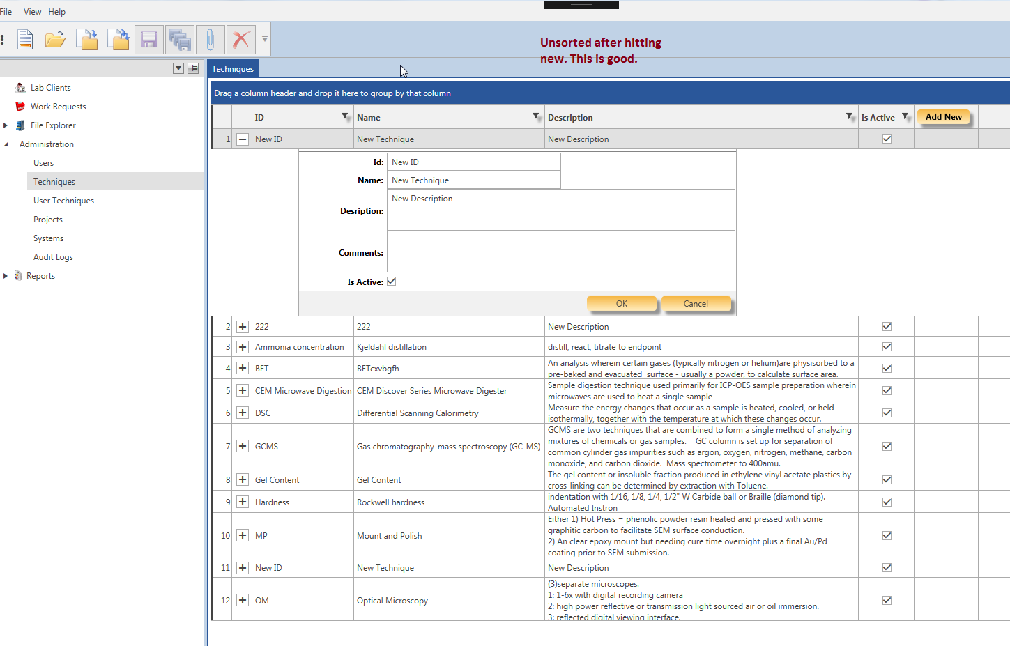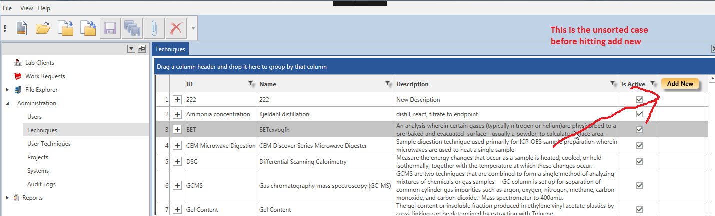 01.public class AddNewRowDetailsItemBehavior : Behavior<RadGridView>02.{03. 04. #region Overrides05. protected override void OnAttached()06. {07. base.OnAttached();08. AssociatedObject.Unloaded += OnUnloaded;09. AssociatedObject.Items.CollectionChanged += OnCollectionChanged;10. }11. #endregion12. 13. private void OnUnloaded(object sender, System.Windows.RoutedEventArgs e)14. {15. AssociatedObject.Unloaded -= OnUnloaded;16. AssociatedObject.Items.CollectionChanged -= OnCollectionChanged;17. }18. 19. private void OnCollectionChanged(object sender, NotifyCollectionChangedEventArgs e)20. {21. if (e.Action.ToString() == "Add")22. {23. 24. RadGridView gv = (RadGridView) AssociatedObject;25. 26. // if I try to clear the sort here the + does not change. If 27. // I clear teh sort in teh click event of teh button in the view28. // it works. Why ???29. //gv.SortDescriptors.Clear();30. dynamic info = App.AppState.GetValue<dynamic>("NewInfo");31. 32. if (info != null)33. {34. int idx = gv.Items.IndexOf(info);35. if (idx >= 0)36. {37. gv.SelectedItem = gv.Items[idx];38. 39. // row is always null40. //var row = gv.ItemContainerGenerator.ContainerFromItem(gv.SelectedItem) as GridViewRow;41. //row.DetailsVisibility = Visibility.Visible;42. 43. // this works!!! but only in an unsorted case. if I sort desc for some reason44. // another row is expanded even though I gv.SortDescriptors.Clear();45. // The question is why is it failing in the sorted case?46. // Also, gv.ChildrenOfType<GridViewRow>().First() returns null in teh debugger's immediate 47. // window.48. gv.ChildrenOfType<GridViewRow>().First().DetailsVisibility = Visibility.Visible;49. 50. 51. // x.Item is always null, why??52. //foreach (var x in gv.ChildrenOfType<GridViewRow>())53. //{54. 55. //}56. 57. // r ends up null. Why??58. //var r = (GridViewRow) gv.ItemContainerGenerator.ContainerFromItem(gv.SelectedItem);59. //r.DetailsVisibility = Visibility.Visible;60. 61. }62. 63. App.AppState.Remove("NewInfo");64. }65. }66. else if (e.Action.ToString() == "Reset")67. {68. RadGridView gv = (RadGridView) AssociatedObject;69. dynamic info = App.AppState.GetValue<dynamic>("NewInfo");70. if (info != null)71. {72. dynamic item = (from dynamic a in gv.Items where a.PK == info.PK select a).First();73. gv.ScrollIntoView(item);74. App.AppState.Remove("NewInfo");75. }76. 77. }78. 79. }80.}Thanks for the details provided.