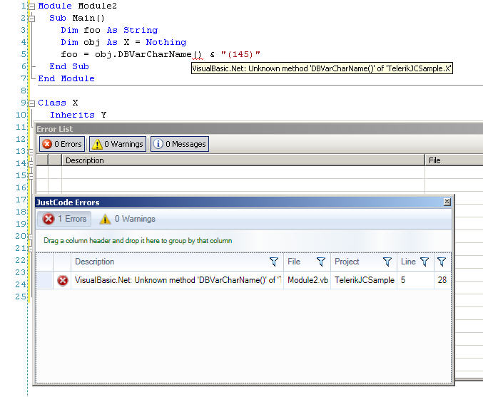 I turn on JustCode and I now have 171 JC errors. Since I now have bold annoying red squigglies all over, I now have to ignore them altogether or turn JustCode off.